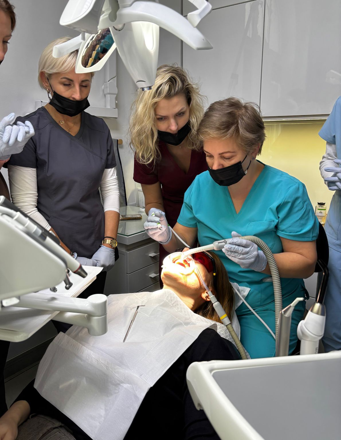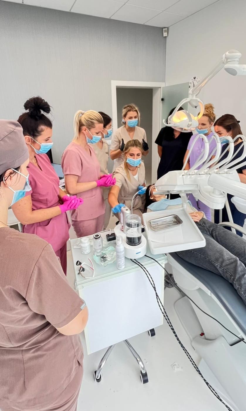 Podczas szkolenia każdy uczestnik pod okiem prowadzącej praktykujacej higienistki stomatologicznej wykona poszczególne etapy zabiegu (skaling, piaskowanie, zabezpieczenia oczyszczonej powierzchni).
